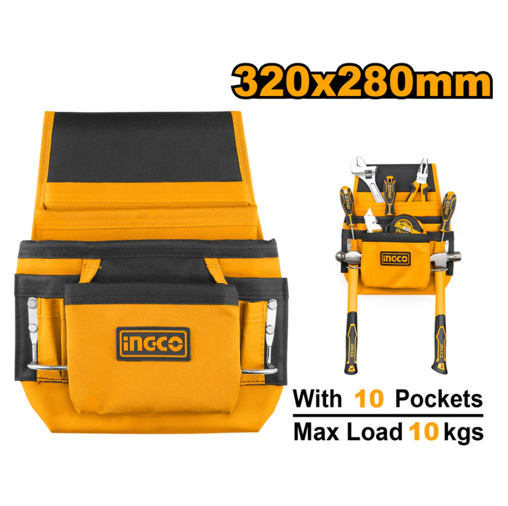 مواصفات : الحجم : 32 سم ( طول ) * 28 سم ( عرض )الجيوب : 10 حاملي المطرقة : 2 المواد : بوليستر سمات : تخزين مريح يوفر جيوباً مختلفة للأدوات وحاملين مخصصين للمطرقة للاستخدام طويل, الأمد تصميم متين