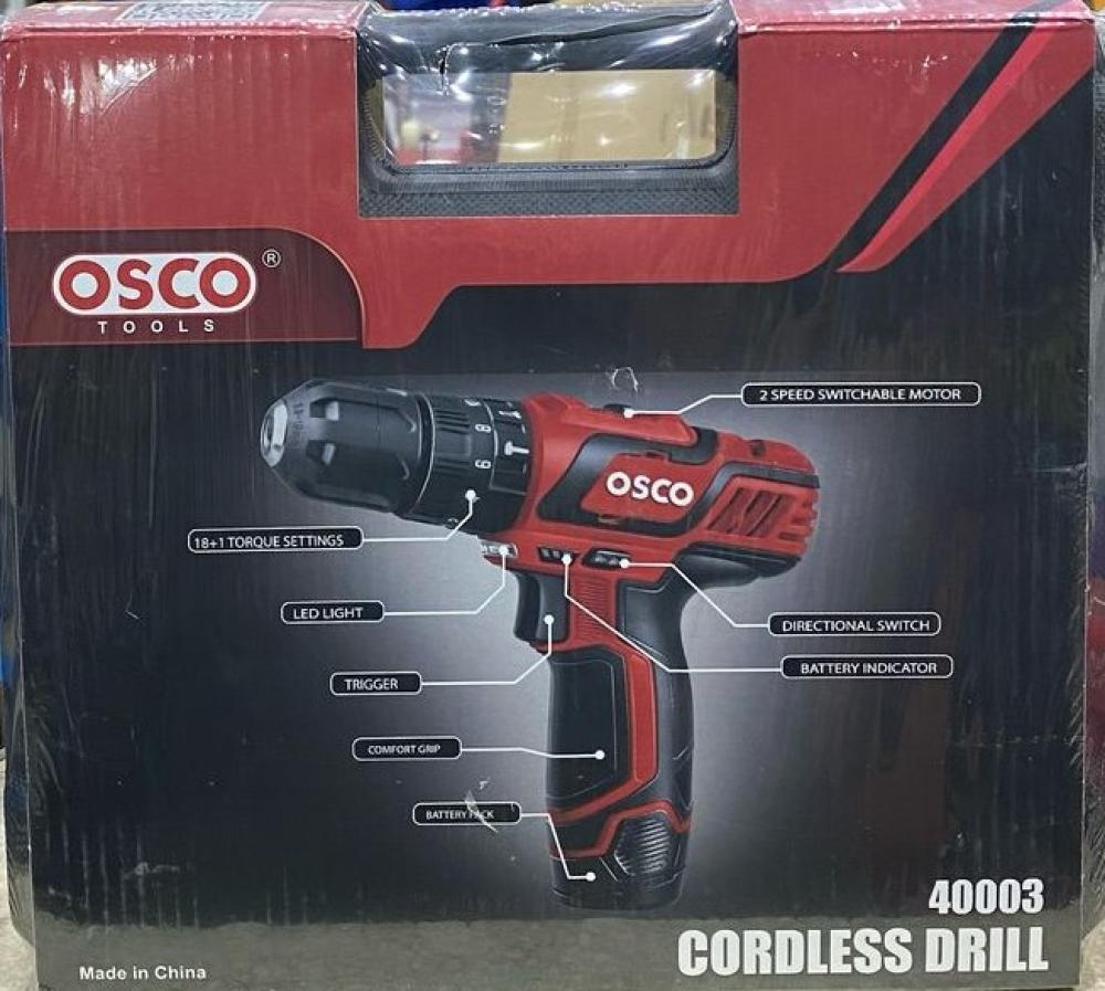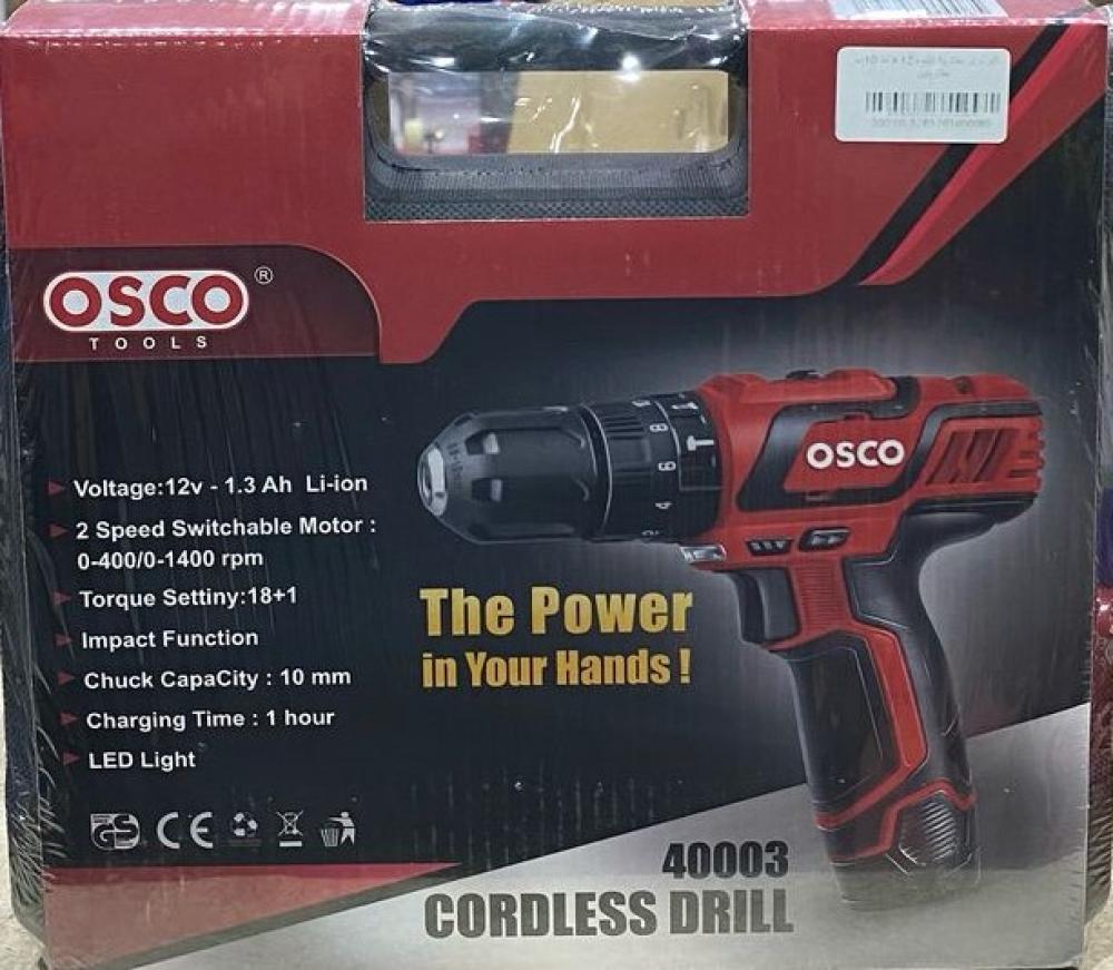 اوسكو - دريل بطاريه ١٢ فولت مقاس ١٠مم بطاريتين