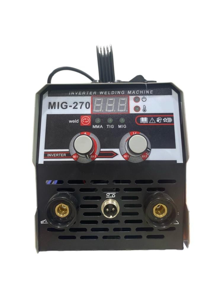 ماكينة لحام قوية متعددة الوظائف بقدرة عالية موديل MIG-270، تدعم ثلاث طرق لحام (MMA - TIG - MIG) لتناسب جميع احتياجاتك في الأعمال المعدنية والورش. مزودة بشاشة رقمية لعرض الفولت والتيار بدقة، وتحكم سهل عبر أزرار مخصصة لضبط الإعدادات. تصميم مدمج وعملي مع نظام تبريد فعال وأداء ثابت حتى في الاستخدام الطويل.